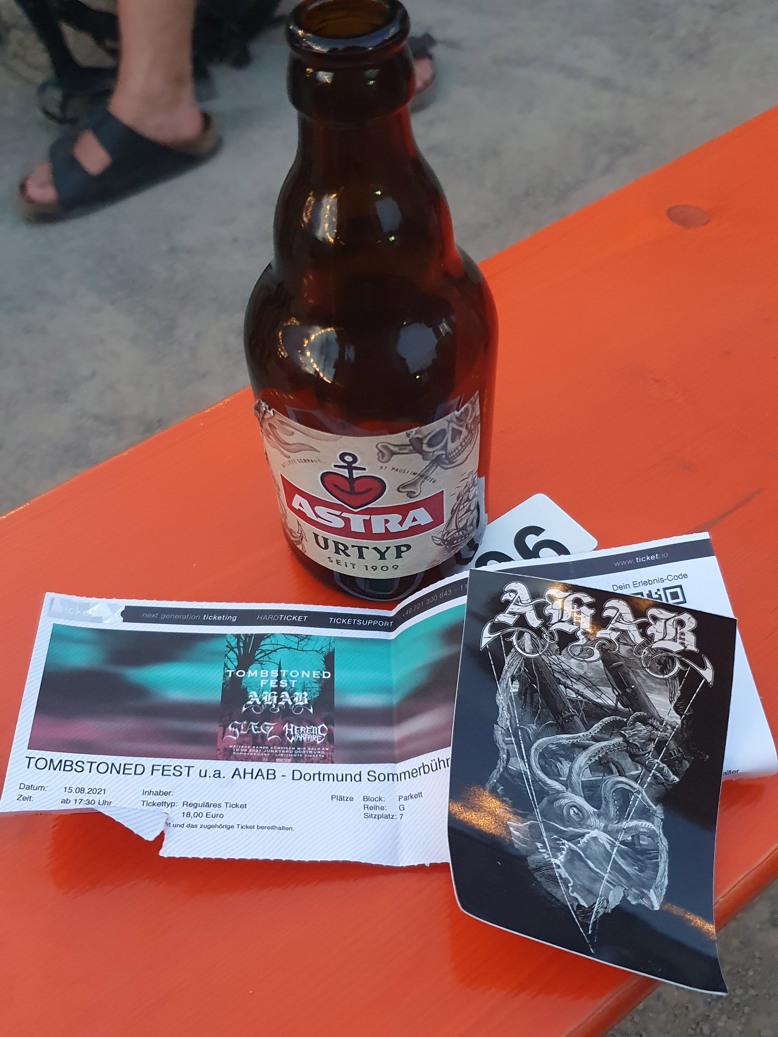 Die Euphorie um Live-Musik ebbte danach nicht ab. Am Viehofer Platz in Essen begannen wieder die Open Air-Konzerte, die sich durch diverse Genres zogen: Es ging von Rockabilly-Punk bis Götz Widmann, ich durfte den Krachmucker-Ernie und Micha El-Goehre mit ihrem "Schnack Ör Die"-Programm auf der Open Air-Bühne der Weststadthalle Essen sehen, das Dortmunder Junkyard -sonst eher sparsam mit Metal-Gigs- lud erst Anfang dieses Monats die polnische Instanz Vader ein und das Tombstoned Fest mit Ahab, Slaegt, Carnation und Heretic Warfare stieg vergangenen Sonntag an selbiger Location im Rahmen der Junkyard-Sommerbühne. (Dass sonst nicht sooo viel Metal im Junkyard "passiert", merkte man an der Musik, die zwischen den Bands gespielt wurde. Zwischen Reggae-Klängen und ätherischem Techno lief, kurz bevor sich der Vader-Support Skaphos aus Frankreich auf der Bühne einfand, erstmal Totos "Africa". Skurril, wenn sich die Jungs mit Corpsepaint und zerrissenen Klamotten wie Schiffbrüchige gerade für ihre maritime Death Metal-Tauchfahrt bereit machten, die Besucherschaft aber den Refrain “It's gonna take a lot to drag me away from you” anstimmte.)