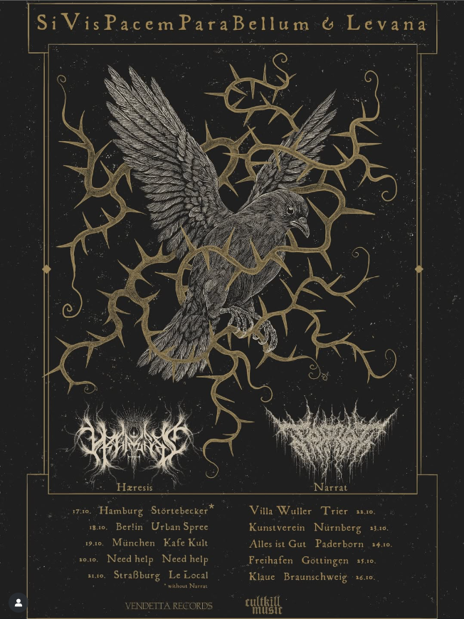 Im Oktober 2025 ziehen Hæresis und Narrat gemeinsam durch die Clubs, um ihre neuen Werke gebührend auf die Bühne zu bringen. Zwei Bands, zwei Veröffentlichungen, "Si Vis Pacem Para Bellum" als Debüt der Berliner Hæresis, sowie "Levana", die neue EP d...