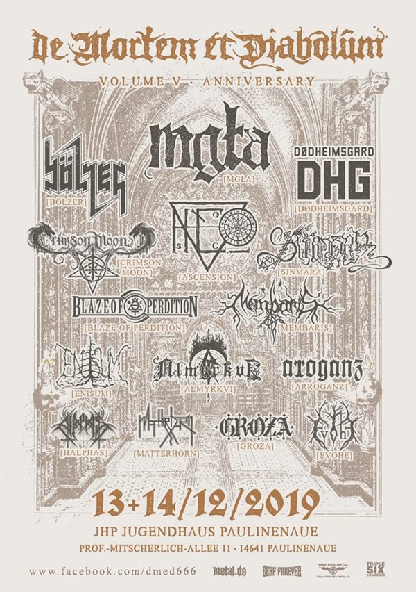 Im Zuge des De Mortem Et Diabolum 2019 konnten wir Mitveranstalter Jan gewinnen, uns eine halbe Stunde lang Rede und Antwort zu stehen. Warum das Event im Havelland und nicht innerhalb von Berlin stattfand, wie es um die Kunstfreiheit in Sachen Black...