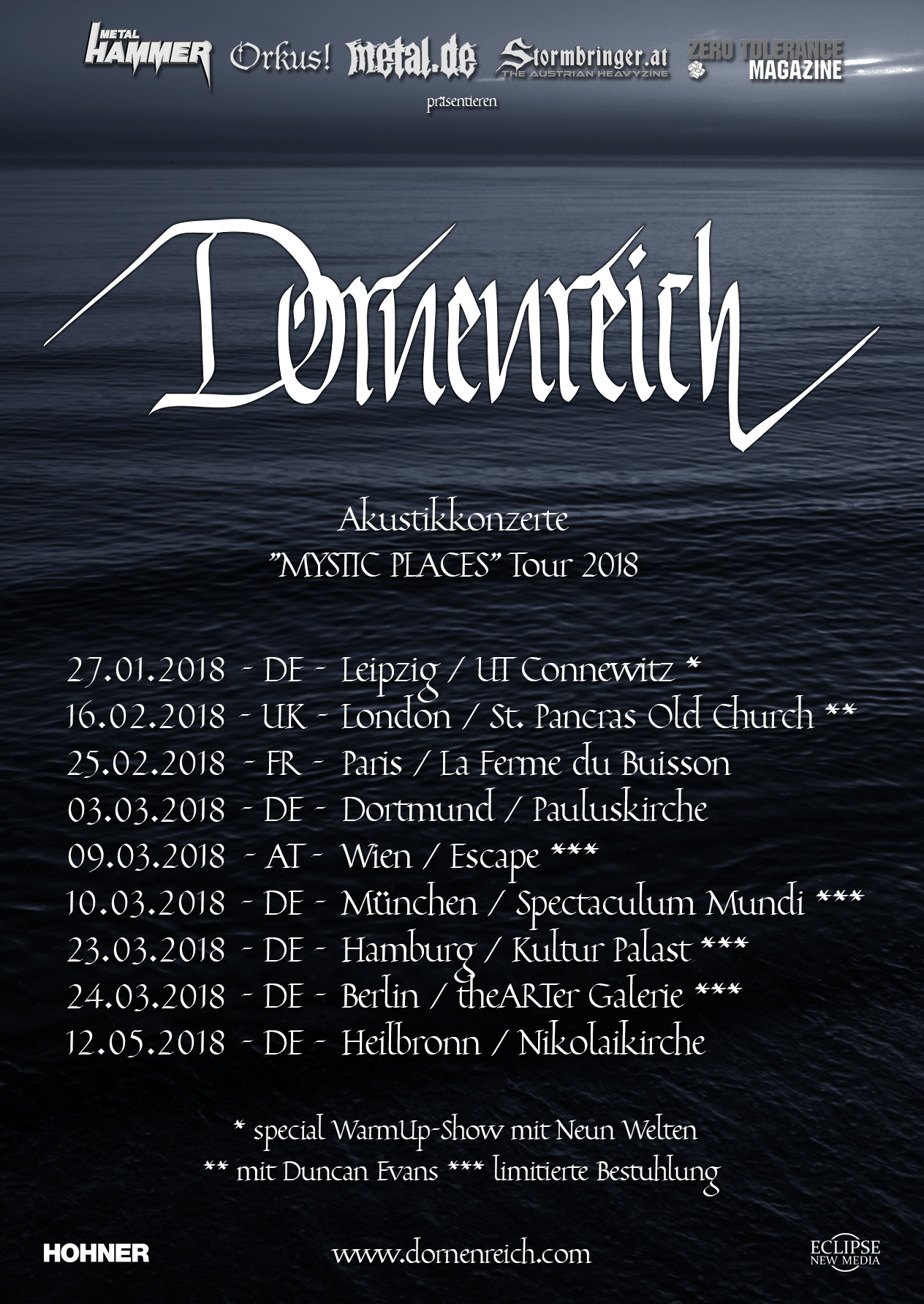 Obwohl es noch zur Veröffentlichung von "Wilde Liebe Sei" etwas dauert, gibt es für Fans von DORNENREICH ein Grund zur Freude, denn das Duo hat einige Akustikshows für den Frühjahr angekündigt.