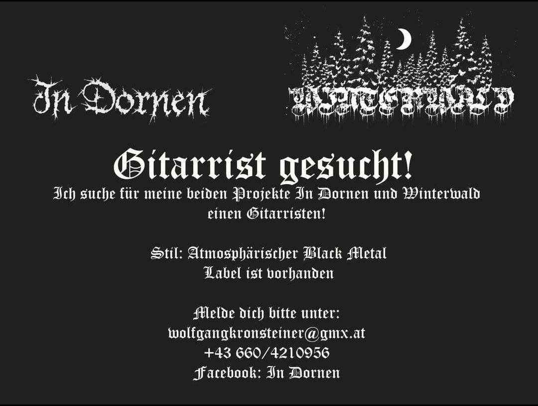 Für die Veröffentlichungen stand das Label Dominance of Darkness Records Pate. Für seine Projekte In Dornen und Winterwald, beide im atmosphärischen Black Metal angesiedelt, wird nun ein Gitarrist gesucht.