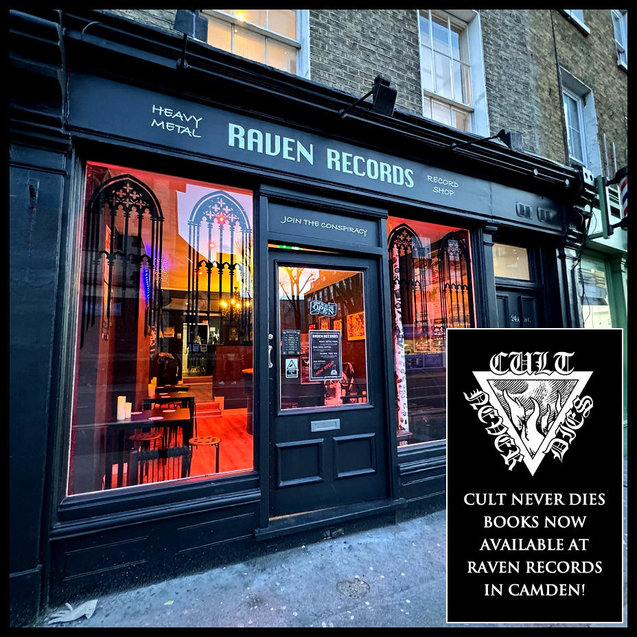 Ab sofort bekommt ihr die Werke auch im "Raven Records" Store in Camden, der nicht unweit von Venues wie "The Underworld", "Black Heart" und dem "Electric Ballroom" gelegen ist. Solltet ihr euch also im Königreich bzw. der Nähe befinden, lohnt sich ein Vorbeihuschen sicher. Mehr Info zu Büchern und Releases von "Cult Never Dies" bekommt ihr ansonsten natürlich auch im Onlineshop!