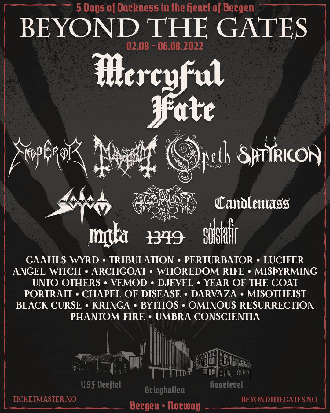 Das Beyond the Gates-Festival in Bergen hingegen hatte seine Pläne für das Jahr 2021 schon längst aufgegeben und schraubt am finalen Schliff für das Lineup der 2022er-Ausgabe. Neu an Bord sind Satirycon, die die ausfallenden Heilung ersetzen werden. Auch Malokarpatan müssen leider aussetzen, werden durch Year oft he Goat aber angemessen vertreten. Die weiteren Neuzugänge für das norwegische Ein-Wochen-Festival lauten Archgoat, Perturbator, Lucifer, Portrait, Misotheist, Kringa, Phantom Fire und Ominous Resurrection. Damit ist das Lineup vollständig und bringt ein überraschend buntes Programm für die Tage vom 02. – 06.08.2022.