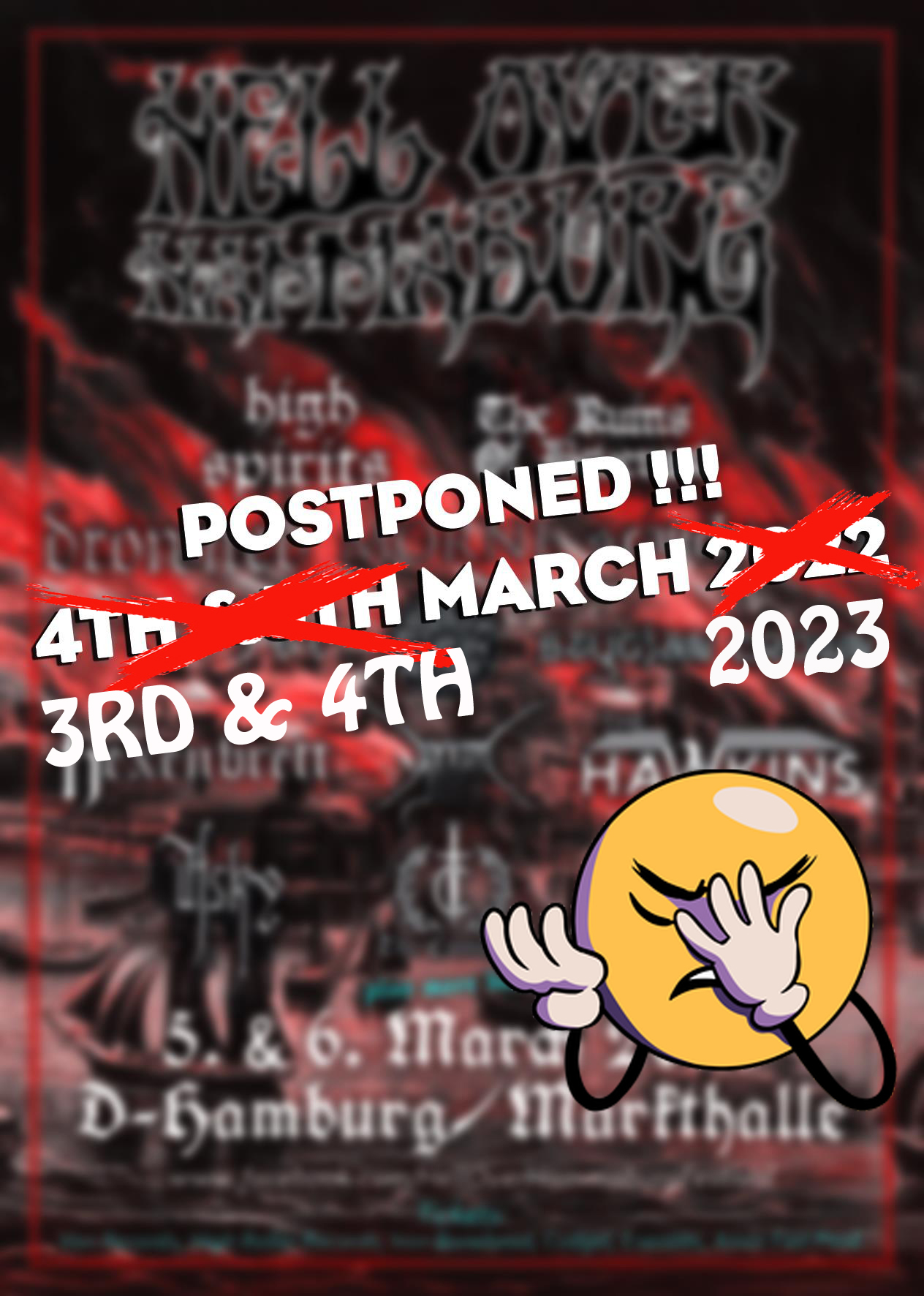 Leider gibt es auch schon für Anfang nächstes Jahr die ersten schlechten Nachrichten, was das Veranstalten von Festivals und Konzerten angeht. Das Hell Over Hammaburg hat diese Woche verkündet, dass sie auch die nächstjährige Edition des Festivals ausfallen lassen und erst 2023 anpeilen das Event wieder zu beleben. Auf der einen Seite natürlich niederschmetternd für alle Fans des HOH, auf der anderen Seite irgendwie auch verständlich für die Veranstalter, dass sie unter den herrschenden Umständen der Pandemie nicht wirklich vorausplanen können und so die Schwierigkeiten eines nomalen Ablaufs des Hell Over Hammaburg nicht gewährleistet ist.