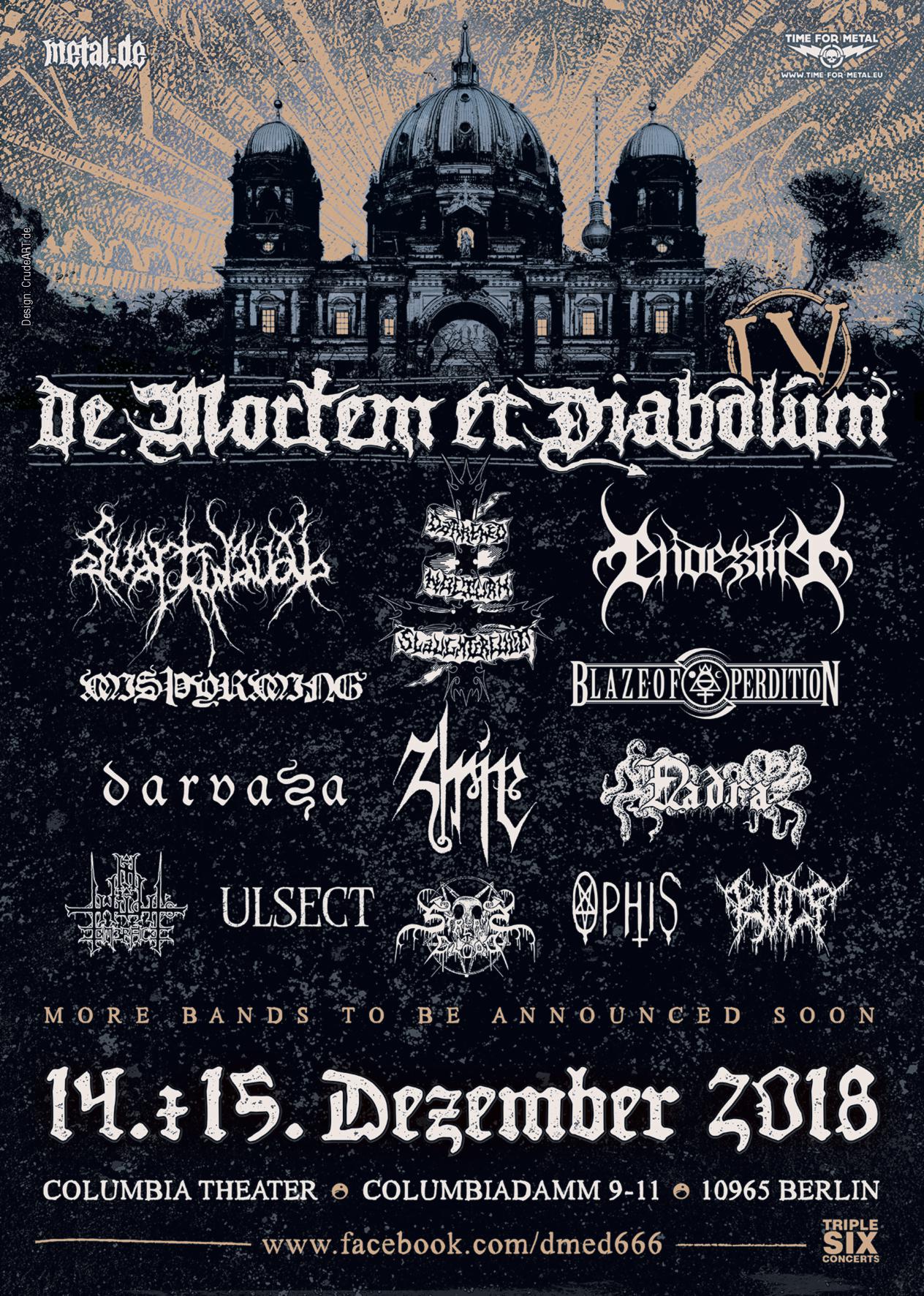 Das De Mortem Et Diabolum Festival geht in die vierte Runde. Am 14. und 15. Dezember geben sich diverse Bands aus dem Untergrund die Ehre. Dabei überwiegt der Black Metal im Lineup. ...