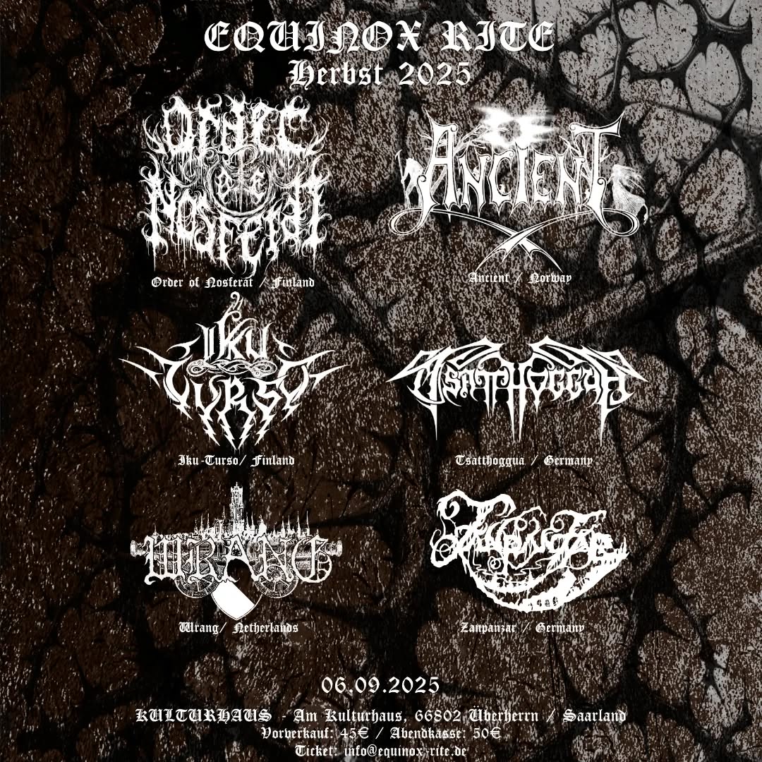 Equinox – jener Moment, in dem Tag und Nacht in vollkommenem Gleichgewicht stehen und die Nächte bald wieder länger werden. Im Kulturhaus Überherrn fand zu diesem Anlass das Equinox Rite statt. So öffneten sich die Pforten auch diesen September für die Herbstausgabe des Festivals. Zwei Mal jährlich lockt es stets mit einem ziemlich starken Lineup all jene an, die dem Schwarzmetall und Pagan frönen.