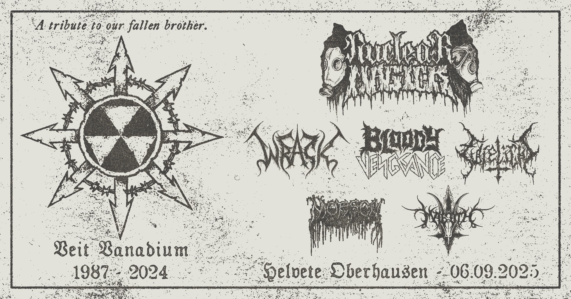 Vor einem Jahr verstarb Veit Vanadium im Alter von nur 37 Jahren – und damit verlor die Metal-Szene NRWs einen besonderen Akteur. Ob als Musiker bei Nuclear Magick und Zwielicht, als Organisator, Technik-Enthusiast oder schlicht als Freund und Weggefährte: Veit hinterließ Spuren, die tiefer reichen, als mancher Außenstehende ahnen mag. Am 6. September 2025 wurde ihm nun rund ein Jahr nach seinem Tod Tribut gezollt: Im Helvete Oberhausen versammelten sich Wegbegleiter, Fans und Freunde, um mit Musik das Andenken an ihn hochzuhalten.