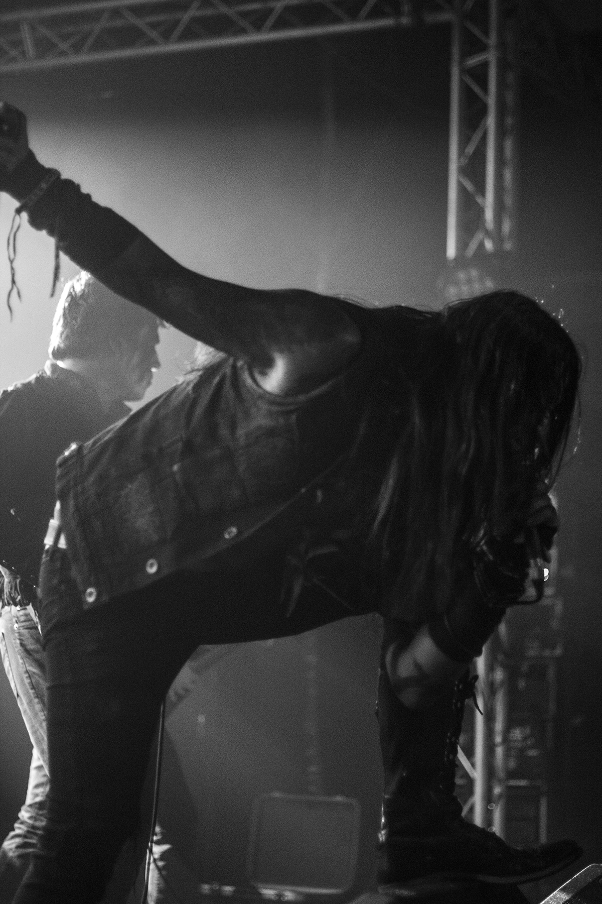 Frontfrau Askahex, die neben den Vocals auch den Bass beisteuert, hatte die Fans in Leipzig ganz gut im Griff und sowieso gehörte die Band an diesem Abend zu einer der Truppen, die offenbar viele unbedingt mitnehmen wollten. Die Musik von Ernte ist im besten Sinne konservativ, nämlich kompromissloser Black Metal, wie er sein soll: echt, aggressiv, rau, aber an manchen Stellen zugleich fein, durchdacht und vor allem gänzlich ohne irgendwelche Spielereien. Ernte brachte genau das auf die Bühne. Die Performance wirkte wie aus einem Guss und unter dem Strich dürften sowohl Fans als auch die Band selbst den Gig schlicht genossen haben. All das ist sicher ein gutes Argument, sich Ende April auf den Weg zur Musigburg Aarburg in der Schweiz zu machen und sich das Ganze in kleinerer Halle und intimerer Atmosphäre noch einmal zu geben.