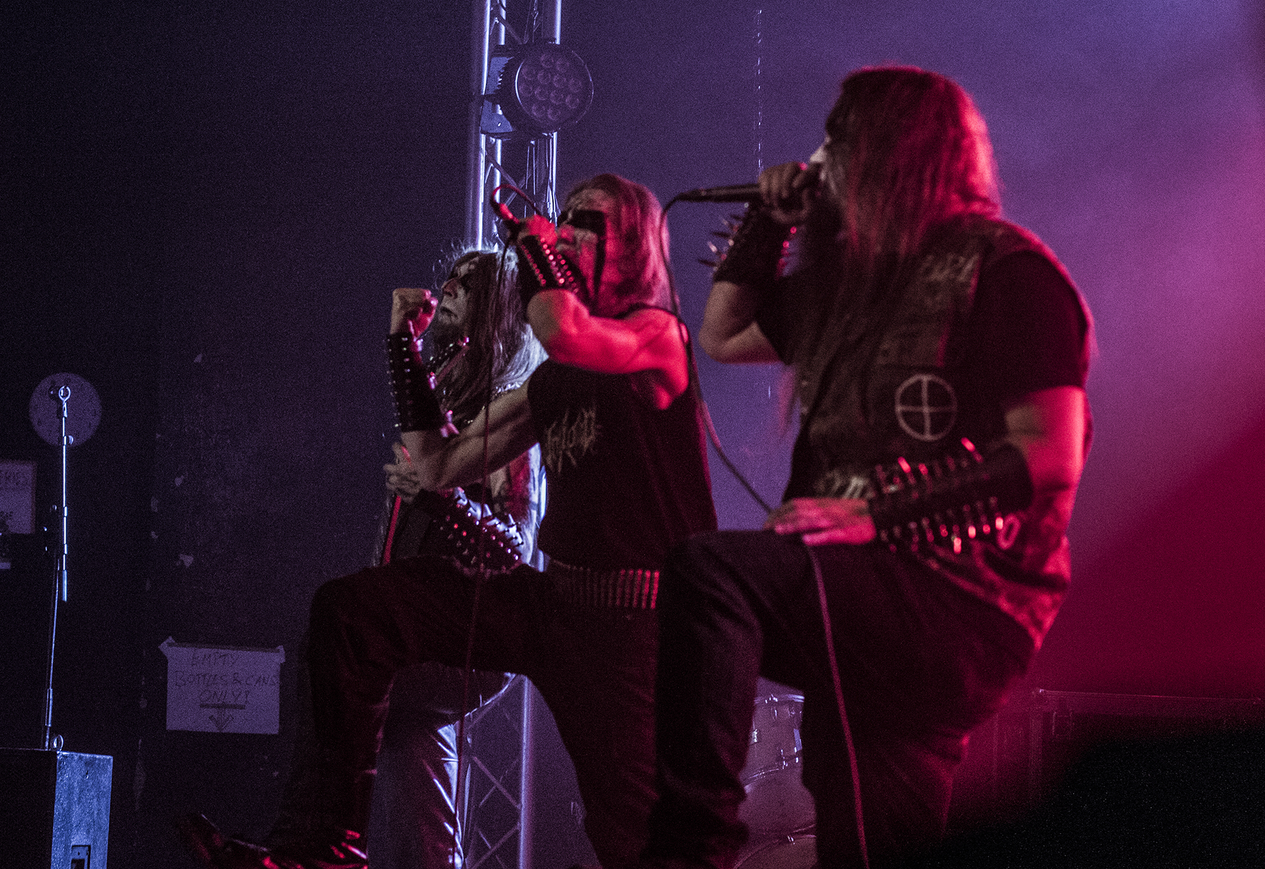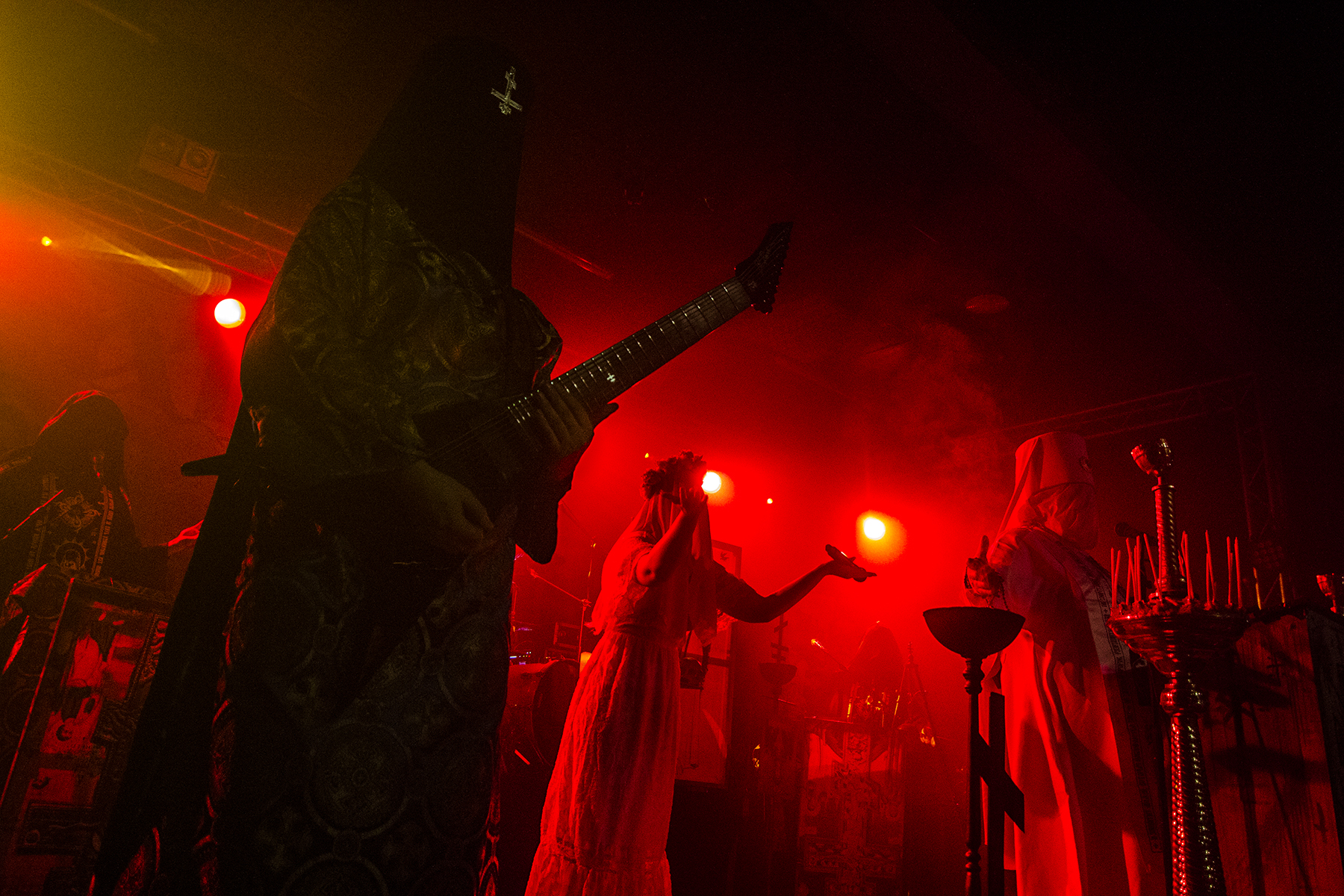 Die Polen von Black Altar sind seit 30 Jahren dabei und gehören damit zu den Veteranen der Szene. Auch wenn die Band in den letzten Jahren nicht mehr durchgängig aktiv war – das letzte Album in voller Länge stammt aus dem Jahr 2008 –, darf ihre Verpflichtung für das Festival durchaus als Coup bezeichnet werden. Die Polen, die sich selbst dem Orthodox Black Metal zuordnen und damit vor allem das Traditionsbewusstsein in der Szene betonen, wissen genau, wie man musikalisch überzeugt und live abliefert. Die Erfahrung merkte man den Musikern an diesem Abend auch deutlich an: Die Band holte die Fans genau dort ab, wo sie es beabsichtigte – in einer ganz dichten Atmosphäre, düster, einnehmend, hoffnungslos. Der schwarze Altar auf der Bühne passte zwar zur Atmosphäre, war angesichts der Musik jedoch eher Beiwerk, zumal es immer wieder Probleme mit den dort postierten Räucherstäbchen gab, die der Band offensichtlich wichtig waren.
